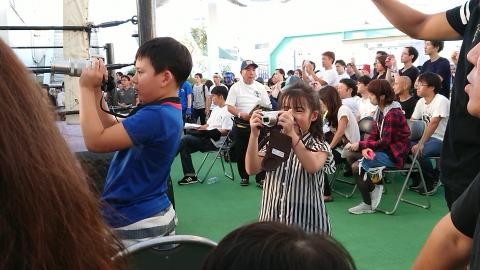 こんなに大きなトラックさん達に囲まれながら頑張りました☆